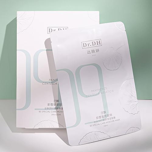 达肤妍B5臻研保湿面膜主打B5+海葡萄+积雪草提取物三重修护buff,0酒精、0香精、0色素,连防腐剂都使用超温和的对羟基苯乙酮。